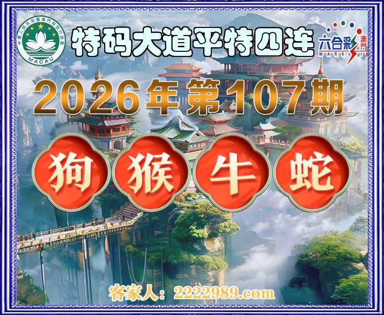 107期:〖特码大道〗 平特四连【狗猴牛蛇】开:00准