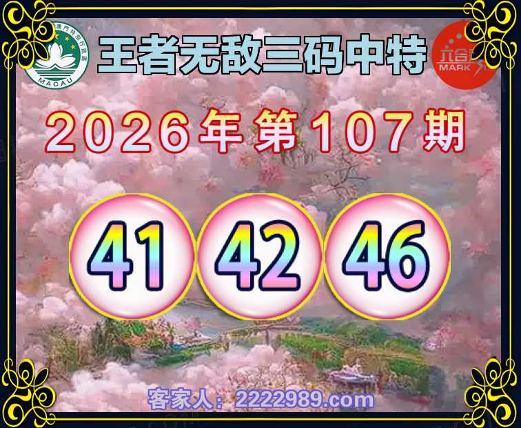 107期:《王者无敌》 三码中特【41.42.46】开:00准