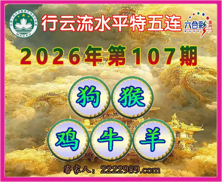 107期:〖行云流水〗 平特五连【狗猴鸡牛羊】开:00准